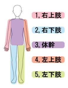 体の5部位 (左手 右手 左足 右足 胴体)の内必要に応じて機能維持や回復を促すマッサージによるお手伝いをさせていただきます。